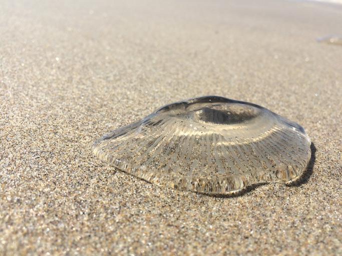 Keywords: jellyfish sand beach close up shore texture