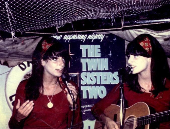 Keywords: Jennie and Terrie Frankel "Twin Sisters Two" perform in Hawaii at Outrigger Hotel for R & R Troops USO.jpg en Jennie and Terrie Frankel identical Doublemint twins were known as The Twin Sisters Two when they performed at Davy Jones Locker at the Outrigger Hotel in Hawaii for servicemen stationed in Hawaii and R R troops visiting from Vietnam - many to spend a short week with their wives girlfriends husbands families visiting from the Mainland - in the early 1970's Having performed with the USO in Vietnam the twins sang folk songs and were popular with servicemen who came to see them perform at the hotel located in Waikiki across the street from the International Market Place Also performing in the hotel was the Society of Seven Owner of the hotel was Dr Richard Kelley who became lifelong friends of the twins and has since gone on to build the Outrigger Hotel chain that reaches throughout Hawaii and the Pacific The twins have been featured in Dr Kelley's newsletter Saturday Briefing several times over the years 2013-06-15 00 23 21 own TwinsofSedona cc-zero Uploaded with UploadWizard Terrie Frankel United Service Organizations Vietnam People with guitars |