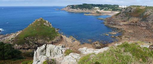 Keywords: jersey england channel islands united kingdom island of jersey island coast cliff sea atlantic rock booked landscape panorama