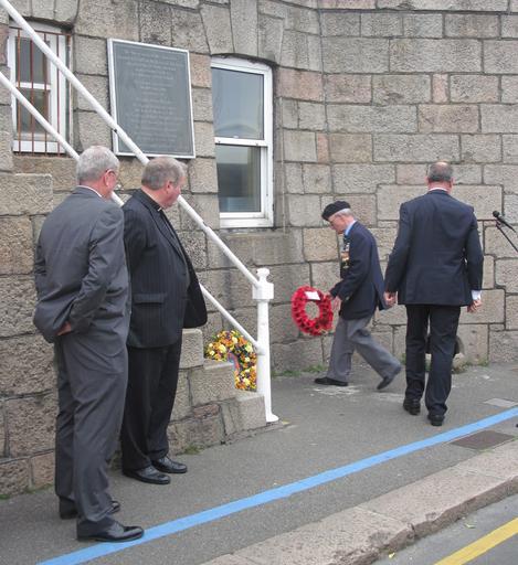 Keywords: Jersey WWII 28 June 1940 bombing commemoration 2013 19.jpg 28 d'Juîn 2013 En mémouaithe d'la bombardéthie Allemande du 28 d'Juîn 1940 et des victînmes Saint Hélyi Jèrri 28 June 2013 Anniversary commemoration of the German bombardment of 28 June 1940 - and of the victims Saint Helier harbour Jersey own photo 2013-06-28 17 42 10 Man vyi ImageNote 1 520 196 442 570 2504 2733 2 On the evening of 28th June 1940 Heinkel Aircraft of the German Air Force attacked the St Helier Harbour in an attempt to test the defences of the Island this plaque was unveiled on 28th June 1990 in memory of Mr John Philip Mauger Mr Harold Frederick Hobbs Mr Robert Bunting Fallis Mr Godfray William Adolph Coleman Mr Leslie Charles Henry Bryan Mr Edward Henry Ferrand Mr William Charles Moody Mr Arthur William Parr who lost their lives as a result of this raid ImageNoteEnd 1 Commemoration of 28 June 1940 German attack against Jersey Memorial wreaths Stairs in Jersey Simon Crowcroft People of Jersey in 2013 John Nettles June 2013 in Jersey Albert Pier Jersey 2013 in Saint Helier Jersey Plaques in Saint Helier Jersey |