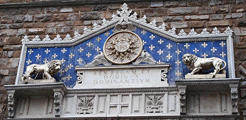 | Keywords: florence coat of arms coatofarms monogram inscription italy architecture outdoor Jesus Christ's monogram with Florence's coat of arms (fleur-de-lis) and inscription REX REGUM ET DOMINUS DOMINANTIUM (between 1528 and 1551) - Palazzo Vecchio in Florence Explore Carlo Raso's 14576 photos on Flickr! | ||||