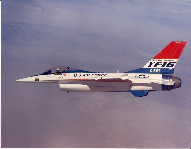 Keywords: jet fighter test flight aircraft airplane military plane flying yf-16 aviation