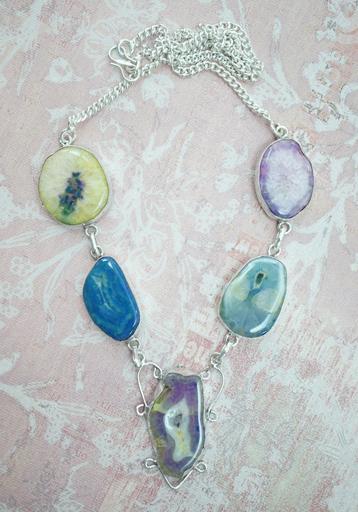 Keywords: jewelry druzy drusy solar quartz quartz necklace choker chain yellow green purple lavender blue stone gem gemstone crystal point jewel jewellery fashion silver sterling sterling silver