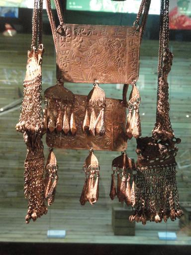| Keywords: Jewelry - Yunnan Nationalities Museum - DSC04163.JPG Yao silver ornament Jewelry in the Yunnan Nationalities Museum Kunming Yunnan China I took this photograph 2011-08-13 01 56 29 Daderot Public domain Jewellery in the Yunnan Nationalities Museum Yao jewellery |