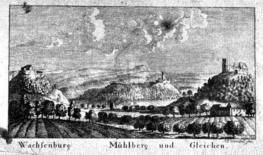 | Keywords: JGWendel Drei Gleichen.jpg  de Wachsenburg Mühlberg und Gleichen J G Wendel fec it Johann Christian Hellbach Historische Nachrichten von den Thüringischen Bergschlössern Gleichen Mühlberg und Wachsenburg ihren Besitzern und Bewohnern Erfurt 1802 Johann Georg Wendel before 1800 Eingescannte Fotokopie PD-Art de Drei Gleichen Engravings of castles in Thuringia |