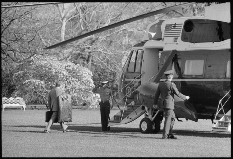 | Keywords: Jimmy Carter carries his bags as he boards Marine One - NARA - 174071.jpg Scope and content General notes 174071 Local identifier President 1977-1981 Carter White House Staff Photographers 01/20/1977 - 01/20/1981 Jimmy Carter Library NLJC 441 Freedom Parkway Atlanta GA 30307-1498 1977-03-16 Record group Collection JC-WHSP Carter White House Photographs Collection 01/20/1977 - 01/22/1981 Record group ARC 1120 Carter White House Photographs Presidential compiled 01/20/1977 - 01/22/1981 Series ARC 173341 File unit 2-3 Meeting with Mr Garrett FitzGerald Foreign Minister of Ireland and Irish Amb John Meloy; 4-12 Mrs Carter meets with wives of Cabinet Members; 13-14 Departure 03/16/1977 - 03/16/1977 File unit ARC 174070 Variant control numbers NAIL Control Number NLC-WHSP-C-00686-14A Other versions <gallery> File Jimmy_Carter_carries_his_bags_as_he_boards_Marine_One_-_NARA_-_174071 tif tif File Jimmy_Carter_carries_his_bags_as_he_boards_Marine_One_-_NARA_-_174071 jpg jpg </gallery> NARA-cooperation PD-USGov Jimmy Carter and Marine One Jimmy Carter |