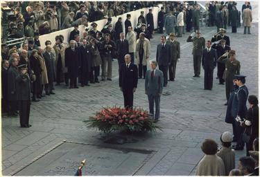 Keywords: Jimmy Carter and Giscard d'Estaing participate in a wreathlaying ceremony at the Tomb of the Unknown Soldier at the... - NARA - 177500.tif Scope and content General notes 177500 Local identifier President 1977-1981 Carter White House Staff Photographers 01/20/1977 - 01/20/1981 Jimmy Carter Library NLJC 441 Freedom Parkway Atlanta GA 30307-1498 1978-01-04 Record group Collection JC-WHSP Carter White House Photographs Collection 01/20/1977 - 01/22/1981 Record group ARC 1120 Carter White House Photographs Presidential compiled 01/20/1977 - 01/22/1981 Series ARC 173341 File unit Arrival Orly Paris Arc de Triumph ceremony 01/05/1978 - 01/05/1978 File unit ARC 177499 Variant control numbers NAIL Control Number NLC-WHSP-C-03917-23A yes Other versions NARA-cooperation PD-USGov Jimmy Carter and Valéry Giscard d'Estaing State visits Memorial wreaths Tomb of the Unknown Soldier in Paris 1978 events in Paris January 1978 in France Arc de Triomphe de l'Étoile in the 1970s