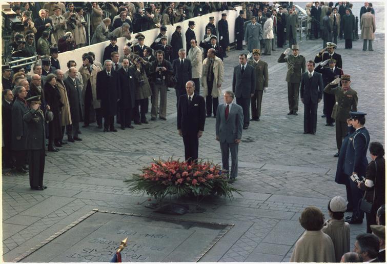 MAKE A MEME View Large Image Jimmy Carter and Giscard d'Estaing participate in a wreathlaying ceremony at the Tomb of the Unknown Soldier at the... - NARA - 177500.tif Scope and content General notes 177500 Local identifier President 1977-1981 Carter White House Staff ...