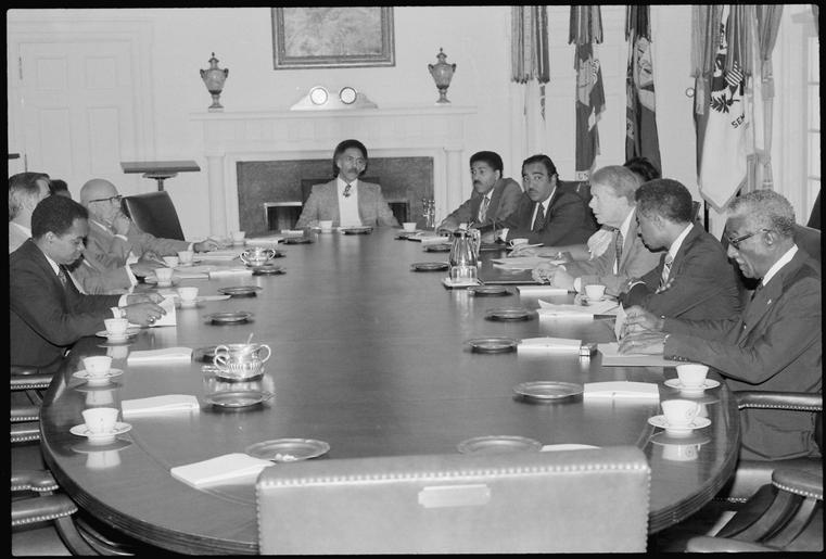 Keywords: Jimmy Carter meeting with congressional black caucus - NARA - 181563.tif Scope and content General notes 181563 Local identifier President 1977-1981 Carter White House Staff Photographers 01/20/1977 - 01/20/1981 Jimmy Carter Library NLJC 441 Freedom Parkway Atlanta GA 30307-1498 1978-09-26 Record group Collection JC-WHSP Carter White House Photographs Collection 01/20/1977 - 01/22/1981 Record group ARC 1120 Carter White House Photographs Presidential compiled 01/20/1977 - 01/22/1981 Series ARC 173341 File unit President Carter mtg with Congr Black Caucus 09/26/1978 - 09/26/1978 File unit ARC 181562 Variant control numbers NAIL Control Number NLC-WHSP-C-07610-7 yes Other versions NARA-cooperation PD-USGov United States Congress Jimmy Carter African American politicians |