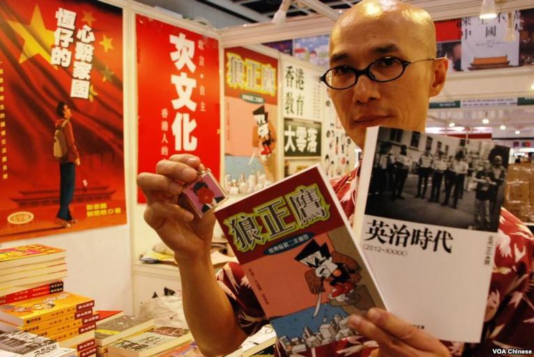 Keywords: Jimmy Pang.jpg 次文化堂社長彭志銘展示兩 今年書展出版 於新任香港特首梁振英的新書 http //www voacantonese com/content/hong-kong-book-fair/1442395 html VOA Chinese VOA Writers from Hong Kong Hong Kong Book Fair