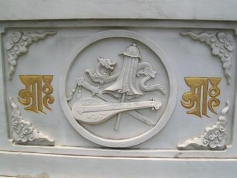 | Keywords: Jing An Temple Stone Sanskrit Ah.jpeg en Two Sanskrit Ä á¸¥ syllables on both sides of a stone carving at Jing'an Temple Shanghai China Ranjana script was developed in India and used in Buddhist art throughout East Asia The central carving depicts the four implements of the Four Heavenly Kings Skt CaturmahÄrÄja of Buddhist cosmology the guardians of Mount Sumeru The mantra is part of three displays for the three-syllable mantra oṃ Äḥ hūṃ own Tengu800 2008-01-06 13 20 05 cc-zero Jing'an Temple Sanskrit script |
