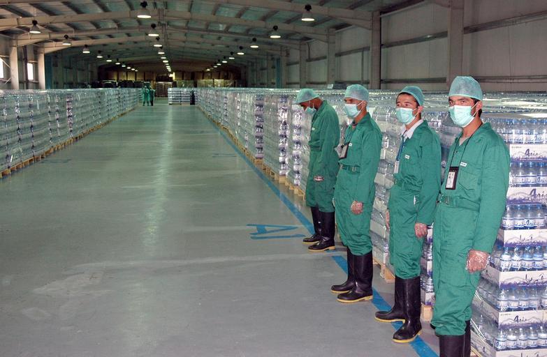 Keywords: JLC, DLA make site visit to Aria water plant DVIDS41394.jpg en Warehouse workers at the Aria bottled water plant stand by their stock April 11 The Aria bottled water plant is located just outside Bagram Airfield Afghanistan and is negotiating a contract to provide bottled water to coalition forces in Afghanistan U S Navy photo by Navy Chief Petty Officer Eric Harrison 2007-04-11 Chief Petty Officer Eric Harrison https //www dvidshub net/image/41394 070411-N-+++++-052 2007-04-13 14 09 BAGRAM AIR FIELD AF PD-USGov-Military-Navy Bagram Air Base Images from DoD uploaded by Fæ |