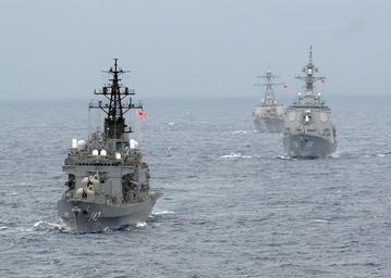 | Keywords: JMSDF Hiei underway with JMSDF Ashigara and USS Curtis Wilbur.jpg PACIFIC OCEAN Nov 17 2009 - The Japan Maritime Self-Defense Force ships the Haruna-class helicopter destroyer JS Hiei DDH-142 and the Atago-class guided-missile destroyer JS Ashigara DDG-178 and the U S Navy ships the Arleigh Burke-class guided-missile destroyer USS Curtis Wilbur DDG-54 and the Oliver Hazard Perry-class guided-missile frigate USS Crommelin FFG-37 are underway in formation during Annual Exercise ANNUALEX 21G Ships from the U S Navy and Japan Maritime Self-Defense Force are participating in the bilateral exercise designed to enhance the capabilities of both naval forces U S Navy photo by Mass Communication Specialist 2nd Class Matthew A Ebarb/Released Nikon D300 2009-11-17 091117-N-5215E-047 Navy http //www news navy mil/view_single asp id 78607 Matthew A Ebarb U S Navy PD-USGov-Military-Navy JS Hiei DDH-142 Hiei JS Ashigara DDG-178 Ashigara ANNUALEX 21G Taken with Nikon D300 |
