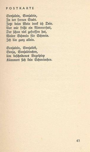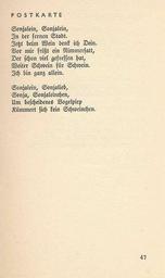 Keywords: Joachim Ringelnatz - Gedichte dreier Jahre 047.jpg Scans of the book Gedichte dreier Jahre by Joachim Ringelnatz 1883 - 1934 http //www ub uni-bielefeld de/diglib/2006/ringeln_dreierjahre/ 1932 Creator Joachim Ringelnatz PD-old Ringelnatz - Gedichte dreier Jahre |
