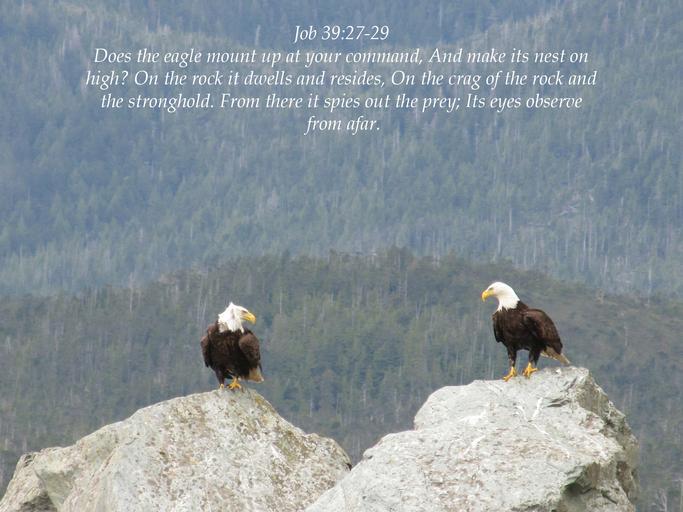 Keywords: god jesus jesus christ jesuschrist god the father godthefather holy spirit holyspirit holy church scripture angels faith prayer pray hope peace love alive forevermore aliveforevermore angel christian righteous king of kings kingofkings heaven archangel god is love godislove prince of peace princeofpeace creator christ the creator christthecreator god the creator godthecreator third heaven thirdheaven awesome alpha and omega alphaandomega wonderful glorious omnipotent almighty bible holy bible holybible armor of god armorofgod glorify hallelujah judgment judgment day judgmentday usa united states of america unitedstatesofamerica sleep christ who strengthens me christwhostrengthensme eagles eagle bald eagle baldeagle wings like eagles wingslikeeagles renew their strength renewtheirstrength word of god wordofgod the lord is my shepherd thelordismyshepherd eternity confess repent repentance humble sinner humble yourself humbleyourself saved lost found salvation praise god praisegod amen word became flesh wordbecameflesh be strong bestrong courage spiritual warfare outdoor New King James Version (NKJV) Does the eagle mount up at your command, And make its nest on high? On the rock it dwells and resides, On the crag of the rock and the stronghold. From there it spies out the prey; Its eyes observe from afar. Romans 8:28 New King James Version (NKJV) And we know that all things work together for good to those who love God, to those who are the called according to His purpose. www.baldeagleinfo.com/ New King James Version (NKJV) Does the eagle mount up at your command, And make its nest on high? On the rock it dwells and resides, On the crag of the rock and the stronghold. From there it spies out the prey; Its eyes observe from afar. Romans 8:28 New King James Version (NKJV) And we know that all things work together for good to those who love God, to those who are the called according to His purpose. www.baldeagleinfo.com/ |