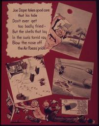 Keywords: "Joe Dope takes good care that his hide Don't ever get too badly fried" - NARA - 514692.tif Scope and content General notes 514692 Local identifier 44-PA-1143CC Office for Emergency Management Office of War Information Domestic Operations Branch Bureau of Special Services 03/09/1943 - 09/15/1945 NARA-Author Eisner Will 1917- Artist 1835939 <br /> Still Picture Records Section Special Media Archives Services Division NWCS-S National Archives at College Park 8601 Adelphi Road College Park MD 20740-6001 1941 - 1945 Record group Record Group 44 Records of the Office of Government Reports 1932 - 1947 Record group ARC 373 World War II Posters compiled 1942 - 1945 Series ARC 513498 File unit File unit ARC Variant control numbers NAIL Control Number NWDNS-44-PA-1143CC yes Other versions <gallery> File Joe_Dope_takes_good_care_that_his_hide_Don't_ever_get_too_badly_fried _-_NARA_-_514692 tif tif File Joe_Dope_takes_good_care_that_his_hide_Don't_ever_get_too_badly_fried _-_NARA_-_514692 jpg jpg </gallery> NARA-cooperation PD-USGov World War II posters from the United States NARA TIF images with categorized JPGs |