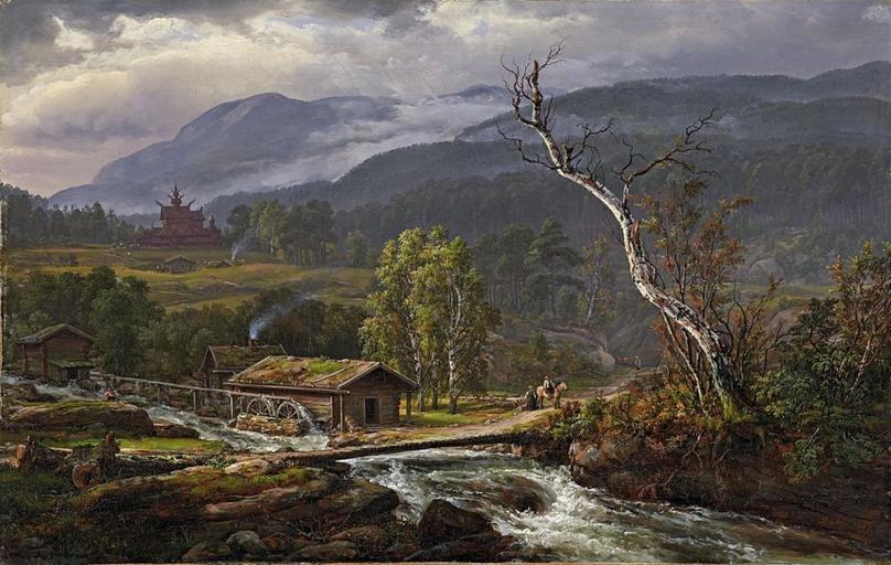 Keywords: Johan Christian Claussen Dahl Landschaft bei Kaupanger mit Stabkirche.jpg Artwork Creator Johan Christian Claussen Dahl Nach Tagebucheinträgen Dahls aus dem Jahr 1847 wurde das Gemälde Landschaft bei Kaupanger mit Stabkirche bei ihm von dem Sammler Hans Konow aus Christiania bestellt wobei Dahl hervorhebt dass das Charakteristische der Region und ihrer Vegetation von ihm genau beobachtet wurde Da sich die vormals berühmte mittelalterliche Stabkirche in Kaupanger aber nur baulich verändert erhalten hatte wurde sie in der Darstellung des Gemäldes von Dahl durch die Ansicht der Stabkirche aus dem norwegischen Ort Vang ersetzt Diese Kirche in Vang sollte um 1840 einem Neubau weichen und abgerissen werden auf Betreiben Dahls wurde sie aber 1841 vom preußischen König Friedrich Wilhelm IV erworben abgebaut in Einzelteile zerlegt und im schlesischen Riesengebirge im Ort Krummhübel wiederaufgebaut <ref>http //www arcadja com/auctions/de/private/clausen_dahl_johan_christian/kunstwerken/357940/0/ ARCADJA auction results</ref> reflist 1847 oil on canvas cm 42 5 66 accession number object history Hans Konow Christiania - Einar Konow 1914 - Auktion Borg Oslo 24 4 1942 Lot 46 - Deutsche Privatsammlung seit 1956 - Auktionshaus šKunsthaus Lempertz ˜ 2010 - Grev Wedels Plass Auksjoner Kunsthandel 2011 credit line JDahl 1847 ~ lower right signature and date 1 http //www lempertz com/375+M50d4c9a3b8c html www lempertz com<br/>2 http //www gwpa no/nor/auctions/105 Grev Wedels Plass Auksjoner Kunsthandel http //images arcadja com/clausen_dahl_johan_christian-landschaft_bei_kaupangermit_stabkirch~MN193~10415_20100515_957_1901 jpg detail PD-old-100-1923 Landscape paintings of Norway by Johan Christian Clausen Dahl 1840s landscape paintings Paintings of watermills 1847 paintings Images from Kunsthaus Lempertz Kaupanger stave church 1840s paintings by Johan Christian Clausen Dahl Oil paintings by Johan Christian Clausen Dahl |