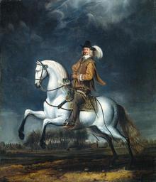 Keywords: Johan Wolfert van Brederode - ruiterportret.jpg Johan Wolfert van Brederode ruiterportret met Batestein in de achtergrond c 1645 Oil on canvas Institution Rijksmuseum Amsterdam http //www herenvanholland nl/eigenaar cfm eigenaarnummer 722 Heren van Holland other versions <gallery>School of Thomas de Keyser 001 jpg</gallery> PD-old-100 Thomas de Keyser School 17th-century portrait paintings in the Rijksmuseum Amsterdam 1645c Johan Wolfert van Brederode 1645c 1640s oil on canvas paintings Portrait 1640s paintings in the Netherlands 1640s portrait paintings Male 17th-century men looking at viewer in art 17th-century oil equestrian portraits of men 1645c Badges of chivalric orders in portrait paintings 1645c Feathered headdresses in art male Male boots with spurs in portrait paintings 1645c Mane braiding Order of the Elephant on portrait paintings 1645c Over the knee boots Portrait paintings of men wearing black hats 1645c Portrait paintings of men with swords 1645c