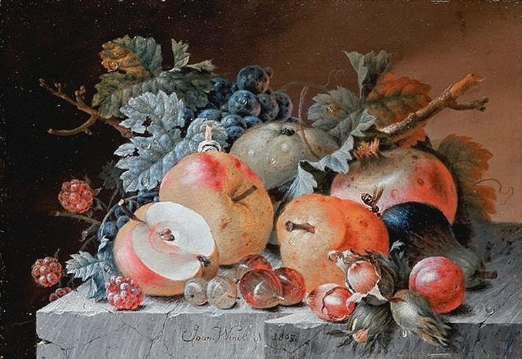 Keywords: Johann Amandus Winck - Stillleben.jpg Artwork Creator Johann Amandus Winck 1803 oil copper cm 21 3 30 2 Institution Wallraf-Richartz-Museum object history Das Bild wurde 1963 mit der Sammlung Hans Lückger Köln für das Wallraf-Richartz-Museum erworben credit line Signatur Joan Winck 1803 Anbringungsort unten Mitte accession number WRM 3173 05010956 PD-old-100 Johann Amandus Winck Paintings in the Wallraf-Richartz-Museum Still life paintings of fruits 1800s still-life paintings 1803 paintings Images from Bildarchiv Foto Marburg |