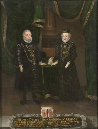 Keywords: Johann Georg 2.jpg Artwork anonymous de Johann Georg Kurfürst von Brandenburg 1525-1598 und seine zweite Gemahlin Sabina Markgräfin von Bayreuth 1529-1575 Sammlung Gripsholm ca 1625 oil on canvas Nationalmuseum Stockholm object history Övertagande 1866 från Gripsholms slott accession number NMGrh 612 http //collection nationalmuseum se/eMuseumPlus service ExternalInterface module collection objectId 15282 viewType detailView Nationalmuseum Stockholm PD-old-100-1923 Portraits in the Nationalmuseum Stockholm John George Elector of Brandenburg Double portrait paintings of wedded couples Johann Georg House of Hohenzollern |