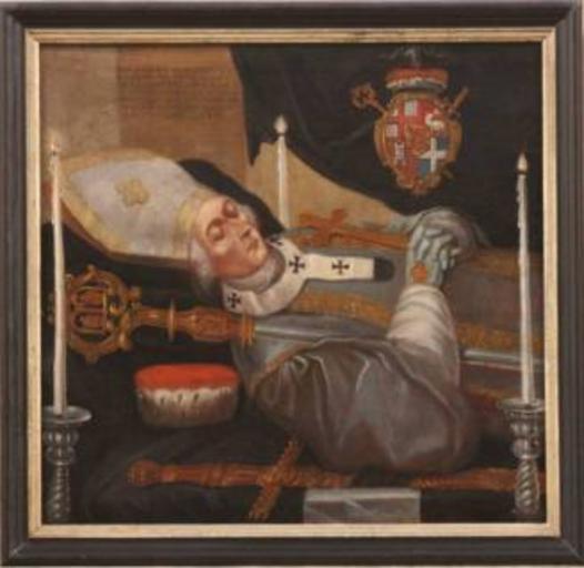 Keywords: Johann Hugo von Orsbeck aufgebahrt.jpg de Fürstbischof Johann Hugo von Orsbeck Webseite über Bischof Orsbeck http //gemeinden erzbistum-koeln de/pfarrverband_weilerswist/kirchen/heilig_kreuz/johann_hugo_von_orsbeck/ zeitgenössischer Maler 1711 PD-old-100 Johann Hugo von Orsbeck Coats of arms of archbishops of the Roman Catholic Diocese of Trier Derivatives of the Coat of arms of Prüm Abbey Derivatives of the Coat of arms of Speyer diocese Derivatives of the Coat of arms of Trier diocese Derivatives of the Coat of arms of Weißenburg priory Ermine headgear in art Clerics with ermine garment |