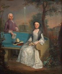 Keywords: Johann Ludwig Aberli, Ehepaar Bachofen.jpg Artwork de Ehepaar Martin Bachofen 1727 “1814 und Margaretha Heitz zugeschrieben ~ 1775 Oil on canvas cm 64 53 accession number object history credit line Galerie Stuker Auktion Frühling 2012 Lot Nr 1034 www galeriestuker ch PD-old-100 DEFAULTSORT 1775; Martin Bachofen Margaretha Heitz Images from Stuker Auktionen Portrait paintings by Johann Ludwig Aberli 1775 18th-century portrait paintings location missing 1770s paintings in Switzerland 18th-century family portraits 18th-century oil on canvas paintings 18th-century oil portraits at full length 18th-century portrait paintings in Switzerland 18th-century portrait paintings with dogs Benches in art Painting frames Portrait paintings of couples Portrait paintings in gardens Uploaded with UploadWizard Portraits with 2 persons 1770s portrait paintings Paintings of women sitting on outdoor benches |