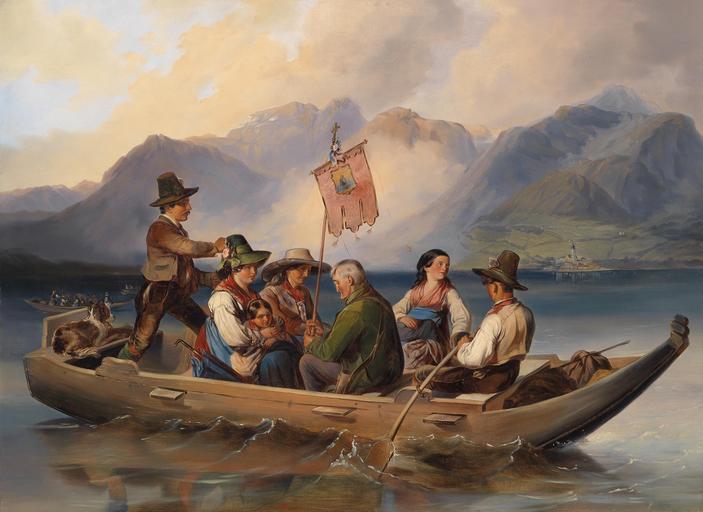 Keywords: Johann Matthias Ranftl Überfahrt am Wolfgangsee.jpg à berfahrt am Wolfgangsee oil on canvas 58 x 79 cm http //www dorotheum com Dorotheum by 1854 Creator Johann Matthias Ranftl PD-old-100 Images from Dorotheum Johann Matthias Ranftl Wolfgangsee in art Boats in art Religious standards Transport in Salzburg state Transport in Upper Austria |