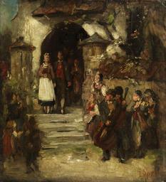 Keywords: Johann Sperl Die fränkische Hochzeit Studie.jpg Die fränkische Hochzeit Studie oil on canvas 37 3 x 34 cm Rechts unten signiert http //www hampel-auctions com Hampel Kunstauktionen ~ 1885 Creator Johann Sperl PD-old-70-1923 Images from Hampel Auctions Johann Sperl Marriage in art 1885 paintings |