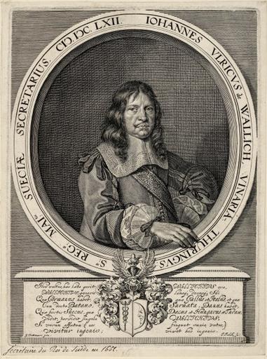 Keywords: Johann Ulrich Wallich 1662.jpg Halbe Figur nach rechts mit der linken Hand in der Seite die rechte auf dem umgebenden ovalen Rahmen langen welligen Haaren kleinem Schnurr- und Spitzbarte Kragen und Manschetten mit breitem Spitzenbesätze Rock mit Stickereien auf der Taille und den Aermeln nebst Schulterstreifen über der rechten Schulter eine schlichte Feldbinde mit Fransen besetzt Hubert Janitscheck 1885 Repertorium für Kunstwissenschaft 1662 Technique engraving Size cm 24 18 object history exhibition history credit line IOHANNES VLRICVS WALLICH VINARIA-THURINGVS Ste REGce MAItis SUECIAE SECRETARIUS accession number Institution Centre de recherche du château de Versailles <br>http //www banqueimages crcv fr/search aspx showtype single first 1 token type search searchform advanced sortField ccRelevance searchfield1 query1 wallich searchfield2 query2 searchfield3 query3 www banqueimages crcv fr PD-old-100 DEFAULTSORT Wallich Johann Ulrich von Johann Ulrich von Wallich Jeremias Falck 1662 engravings 17th-century engraved oval portraits of men at half length La collection de portraits gravés du roi Louis-Philippe |