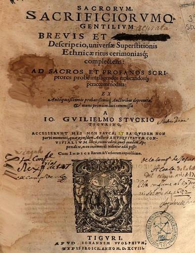 Keywords: Johann Wilhelm Stuck (1542-1607).jpg en Johannes Stuckius 1542-1607 Sacrorum sacrificiorumque gentilium breuis et accurata descriptio ¦ pt Johannes Stuckius 1542-1607 Sacrorum sacrificiorumque gentilium breuis et accurata descriptio ¦ Google books Johannes Stuckius 1542 “1607 1598 PD-old-100 1598 books Title pages in Latin |
