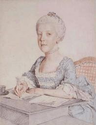 Keywords: Johanna Gabriele of Habsburg Lorraine.gif Johanna Gabrielle of Austria 1762 by Liotard jpg Artwork Creator Jean-Étienne Liotard Archduchess Johanna Gabriele of Austria daughter of Holy Roman Emperor Franz I Stephan of Lorraine and his wife Empress Maria Theresia of Austria < 1762 Red and black chalk graphite pencil and watercolor glaze on white fine laid paper; enhanced overleaf Sanguine pierre noire crayon de graphite et glacis d'aquarelle sur papier vergé blanc très fin; rehaussé au verso Institution Musée d'Art et d'Histoire Geneva Cabinet des Dessins http //de wikipedia org/wiki/Bild Johanna_Gabriele_von_ C3 96sterreich gif www ville-ge ch http //ville-ge ch/ Home http //www ville-ge ch/musinfo/bd/mah/collections/detail php id 1268449 Info http //www ville-ge ch/musinfo/bd/mah/images_museumplus/big/0001268000/0001268449_0000116009_OG JPG Pic noted on german wikipedia Uploaded to de 2006-01-23T18 55 05 by de User Caro1409 PD-old-100 DEFAULTSORT 1762c; Johanna Gabriele of Austria Empress Maria Theresa ™s Children Liotard series 07 Drawings of sitting females 07 Archduchess Johanna Gabriele of Austria 18th-century portrait drawings of girls 18th-century portraits of girls at half length Female hair fashion in art Females facing left in art Portrait paintings of sitting girls Portrait paintings holding quills Portraits writing Women writing in art |