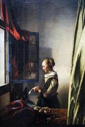 Keywords: Johannes Vermeer -Girl reading a letter by an open window (c 1657).jpg Artwork Creator Jan Vermeer van Delft Brieflesendes Mädchen am offenen Fenster Fragment Girl reading a Letter at an Open Window fragment Lezend meisje bij het venster fragment ca 1658 Oil on canvas cm 83 64 5 Gemäldegalerie Alte Meister Genre works <br>The image is cropped The Yorck Project 10 000 Meisterwerke der Malerei DVD-ROM 2002 ISBN 3936122202 Distributed by DIRECTMEDIA Publishing GmbH http //mail wikipedia org/pipermail/wikide-l/2005-April/012195 html PD-old-100 Girl reading a letter at an open window by Johannes Vermeer Details of paintings by Johannes Vermeer |