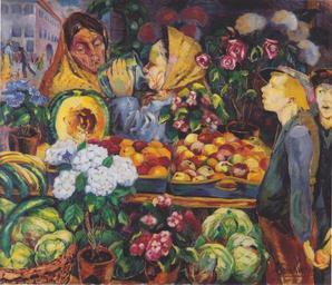 | Keywords: Johannessen - Marktszene - ca 1916.jpeg Artwork creator Aksel Waldemar Johannessen ca 1916 oil canvas cm 118 148 Private collection Oslo object history credit line accession number repro from art book Author died more than 70 years ago - public domain PD-old Paintings by Aksel Waldemar Johannessen 20th-century oil on canvas paintings in Norway Genre paintings in Norway 1916 paintings in Norway 20th-century paintings in private collections Paintings of markets | ||||