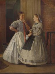 Keywords: John Finnie. Maids of All Work, 1864-65.jpg Two maids chatting at a door one with a broom the other holding a jug Both wearing crinolines 1864-65 oil on canvas 58 x 42 7 cm The Geffrye Museum British Institution in 1865 catalogue number 628 Purchased by the Geffrye in 1981 from the Christopher Wood Gallery Signed and dated in bottom right corner 'J Finnie 1864-5' 39/1981 http //www magnoliabox com/art/529105/maids-of-all-work PD-old-100-1923 1907 Uploaded with UploadWizard Maids in art Maids in the United Kingdom Crinolines in art Fashion in 1865 Paintings in the Geffrye Museum |