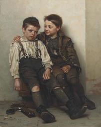 Keywords: John George Brown - Sympathy (1885).jpg Artwork Creator John George Brown 1885 oil canvas cm 64 1 50 8 object history Sotheby Parke-Bernet New York 23 May 1974 lot 89 <br/>Private collection <br/>By descent to the last owner credit line signed and dated 'J G Brown N A /1885 ' lower left accession number Christie's online 5752532 275 162 New York 5 December 2013 PD-old-auto-1923 1913 John George Brown Paintings of boys 1880s paintings in the United States |