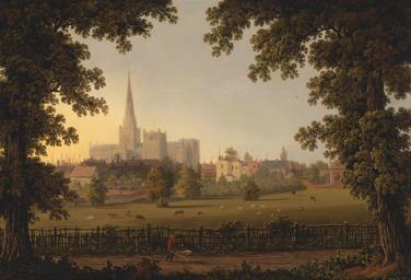 Keywords: john gilbert art artistic painting oil on canvas artistry landscape sky clouds trees nature outside country countryside scenic forest village buildings