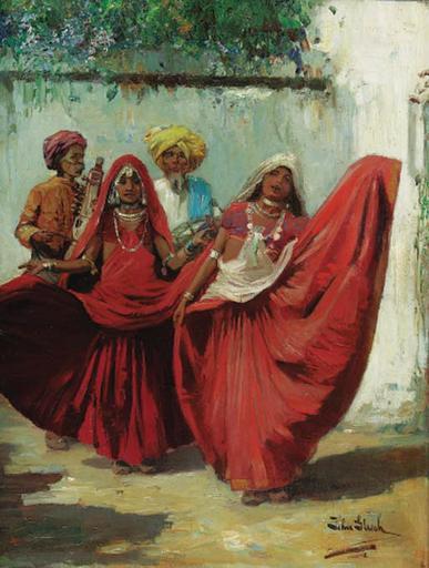 Keywords: John Gleich - Two Indian Nauch girls with musicians.jpg > 1927 oil canvas cm 50 8 38 1 accession number object history credit line signed 'John Gleich' lower right Christies online 1544056 PD-old-auto-1923 1927 Orientalist paintings by John Gleich Portrait paintings of women Nautch in art |