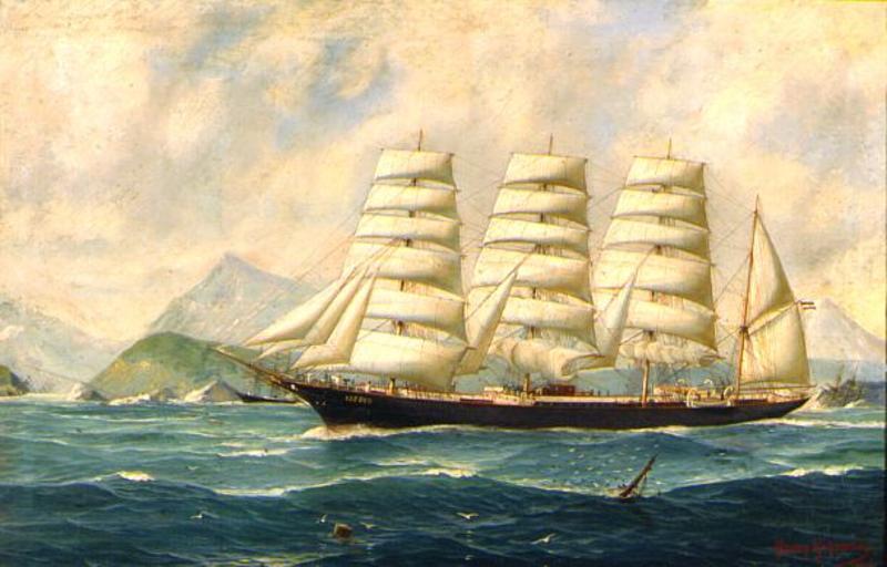 Keywords: John Henry Mohrmann - The German barque Isebek.jpg Artwork attributed to John Henry Mohrmann 1857-1916 Portrait of the vessel under full sail in the Le-Maire-Street near Cape Horn the shipwrecked ship Thekla of Hamburg on the cliffs in the background 1912 oil canvas cm 45 71 http //www fineartemporium com/Werdere htm Werder Collection Germany object history credit line accession number http //www fineartemporium com/we-Mohr-Isebek-image htm fineartemporium com PD-old-auto-1923 1916 Isebek ship 1892 John Henry Mohrmann 20th-century sailing ships in paintings 1912 paintings Thekla ship 1892 |