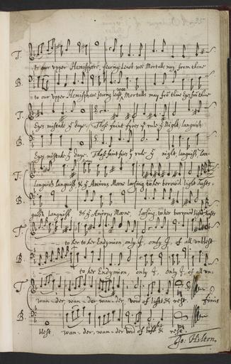 | Keywords: John Hilton - Arise, fair sun - British Library Add MS 11608 f35r.jpg A handwritten page folio 35r from BL Add MS 49626 an untitled collection of songs and catches by John Hilton and others This page contains Arise fair sun by Hilton and is in the composer's own hand Held and digitised by the British Library circa 1640 1660 Ink on paper 30x19 cm Institution British Library object history exhibition history credit line accession number Add MS 11608 f 35r British Library image Add MS 11608 PD-old PD-US John Hilton Musical autographs British Library musical manuscripts British Library images not yet checked British Library Additional Manuscripts music |