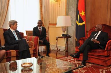 | Keywords: John Kerry & Jose Eduardo dos Santos 2014.jpg en U S Secretary of State John Kerry and Angolan President Jose Eduardo dos Santos chat before their bilateral meeting at the Presidential Palace in Luanda on May 5 2014 es El Secretario de Estado de los Estados Unidos John Kerry y El Presidente de Angola José Eduardo dos Santos habla al Palacio Presidencial en Luanda en el 5 de mayo 2014-05-05 05 32 28 https //www flickr com/photos/statephotos/14113524474/in/photostream/ U S Department of State PD-USGov Uploaded with UploadWizard John Kerry visit to Africa April-May 2014 John Kerry with national leaders José Eduardo dos Santos Photographs taken on 2014-05-05 |