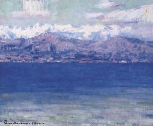 | Keywords: John Peter Russell - La Mer a La Spezia, 1896.jpg La Mer a La Spezia 1896 oil on canvas 60 x 72 cm by John Peter Russell 1858 1930 The painting is in a private collection External links http //www christies com/LotFinder/lot_details aspx from searchresults intObjectID 4280020 sid bac97a2e-0bce-4c2b-a388-363e56058c55 John Peter Russell La Mer a La Spezia 1896 PD-Australia John Peter Russell | ||||