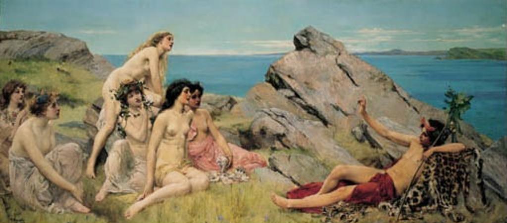 Keywords: John Reinhard Weguelin – Bacchus and the Choir of Nymphs (1888).jpg en On a rocky cliff overlooking the sea Bacchus reclines on a leopard skin as he speaks to a choir of nymphs sitting nearby on the grass Oil on canvas 49 x 108 1/2 1888 http //www christies com/lotfinderimages/d20748/d2074814x jpg creator John Reinhard Weguelin object history exhibition history credit line accession number PD-old-auto-1923 1927 Uploaded with UploadWizard John Reinhard Weguelin 1888 paintings 19th-century mythological paintings Paintings of Dionysos Paintings of nymphs Group paintings of nude women in nature |