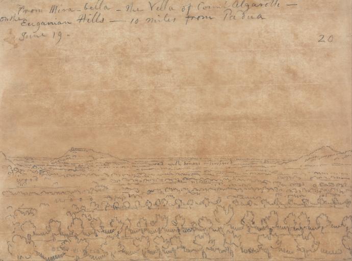 Keywords: John Robert Cozens - From Mirabella, the Villa of Count Algarotti on the Euganean Hills - Google Art Project.jpg ~ 1783 London 1752 London 1799 John male 2353877 Robert Cozens British 1752 - 1799 /collection/yale-center-for-british-art/artwork/from-mirabella-the-villa-of-count-algarotti-on-the-euganean-hills-john-robert-cozens/2439693/ John Robert Cozens Artist /artist/john-robert-cozens/4126187/ 4126187 /collection/yale-center-for-british-art/ Yale Center for British Art 2305845 http //britishart yale edu/ 2/24/2012 12 36 04 AM /collection/yale-center-for-british-art/artwork/from-mirabella-the-villa-of-count-algarotti-on-the-euganean-hills-john-robert-cozens/2439693/ 1778 ca 1783 plains trees landscape Graphite and varnish on thin slightly textured cream laid paper 191 2439693 False 1788 3/24/2012 9 59 53 PM YCBA/lido-TMS-9122 http //collections britishart yale edu/vufind/Record/1671566 Yale Center for British Art Paul Mellon Collection drawing 1770 1790 London Creation w251 x h191 cm ca 1783 False 1 34736842105263 Item from-mirabella-the-villa-of-count-algarotti-on-the-euganean-hills-john-robert-cozens From Mirabella the Villa of Count Algarotti on the Euganean Hills f 251 Inscribed in artist's hand in graphite upper left to upper right From Mira-bella - the Villa of Count Algarotti - on the Euganian Hills - 10 miles from Padua June 19 - ; in graphite upper right 20 ; in graphite center wood with houses interspers'd ; in graphite center left plain wood wood ; in graphite lower left 127 Inscription _Signed_and_Dated not signed Not on View Graphite and varnish on thin slightly textured cream laid paper plains trees landscape special url_id DwFgyplIBiZUjA PD-old-100-1923 1799 Italy in art by John Robert Cozens Google Art Project works by John Robert Cozens Colli Euganei |
