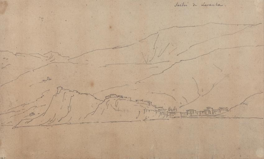 Keywords: John Robert Cozens - Sestri di Levante - Google Art Project.jpg Inscribed in graphite upper right Sestre di Levanta ; in graphite lower left 147 Inscription _Signed_and_Dated not signed Not on View Graphite on thin slightly textured cream laid paper cliffs mountains hills buildings landscape special url_id SgGqD-Q2BSUGAw PD-old-100-1923 1799 Italy in art by John Robert Cozens Google Art Project works by John Robert Cozens |