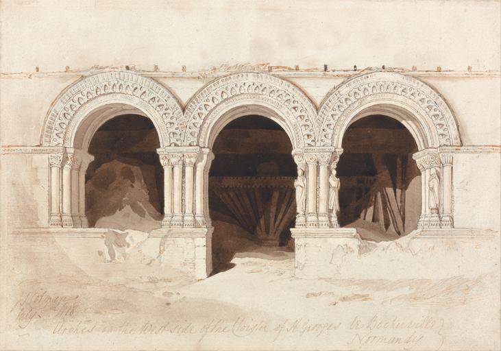 Keywords: John Sell Cotman - Arches in the West Side of the Cloister of Saint. Georges de Bocherville, near Rouen, Normandy - Google Art Project.jpg ~ 1818 Norwich 1782 London 1842 John male 2340308 Sell Cotman British 1782 - 1842 /collection/yale-center-for-british-art/artwork/arches-in-the-west-side-of-the-cloister-of-saint-georges-de-bocherville-near-rouen-normandy-john-sell-cotman/2439630/ John Sell Cotman Artist /artist/john-sell-cotman/4130695/ 4130695 /collection/yale-center-for-british-art/ Yale Center for British Art 2305845 http //britishart yale edu/ 2/24/2012 12 32 09 AM /collection/yale-center-for-british-art/artwork/arches-in-the-west-side-of-the-cloister-of-saint-georges-de-bocherville-near-rouen-normandy-john-sell-cotman/2439630/ 1813 ca 1818 architectural subject arches cloister Graphite and brown wash and brown ink on medium smooth cream wove paper 238 2439630 False 1823 3/25/2012 10 03 58 PM YCBA/lido-TMS-8686 http //collections britishart yale edu/vufind/Record/1671335 Yale Center for British Art Paul Mellon Collection drawing 1810 1830 Norwich Creation w337 x h238 cm ca 1818 False 1 43016759776536 Item arches-in-the-west-side-of-the-cloister-of-saint-georges-de-bocherville-near-rouen-normandy-john-sell-cotman Arches in the West Side of the Cloister of Saint Georges de Bocherville near Rouen Normandy a 337 Inscribed in brown ink lower left Arches in the West side of the Cloister of St Georges de Bocherville Normandy Inscription _Signed_and_Dated Signed in brown ink lower left J S Cotman July 3rd 1818 Not on View Graphite and brown wash and brown ink on medium smooth cream wove paper architectural subject arches cloister special url_id cwF7X5XixO6QiA PD-old-100-1923 1842 Normandy by John Sell Cotman Google Art Project works by John Sell Cotman Abbaye Saint-Georges de Boscherville |