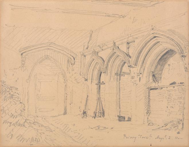 Keywords: John Sell Cotman - Interior of the Ruins of Yarmouth Priory - Google Art Project.jpg Inscribed in graphite lower left Very dark ; lower right Priory Yarm th Augs t 2 11-- Inscription _Marks Collector's mark RIBA blind stamp Not on View Graphite on medium moderately textured beige wove paper architectural subject interior arches ruins priory special url_id 9gHnv7OmwVSqpQ PD-old-100-1923 1842 John Sell Cotman Google Art Project works by John Sell Cotman Priories in Norfolk England 1811 drawings Drawings of ruins |