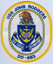Keywords: JohnRodgers DD983 Arms.jpg en USS John Rodgers DD-983 coat of arms Scanned embroidered patch Author 1985-01-01 PD-USGov-Military-Navy Military coats of arms of the United States USS John Rodgers DD-983