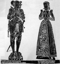 Keywords: JohnWyndham&ElizabethSydenhamWatchet.jpg en photograph of 19th c brass rubbing of monumental brass of Sir John Wyndham his wife Elizabeth Sydenham d 1571 St Decuman's Church Watchet Somerset http //www flickr com/photos/52219527 N00/5312253292/ unknown sculptor; photo by jmc4 - Church Explorer monumental brass c 1571 Church of Saint Decuman in Watchet interior PD-Art