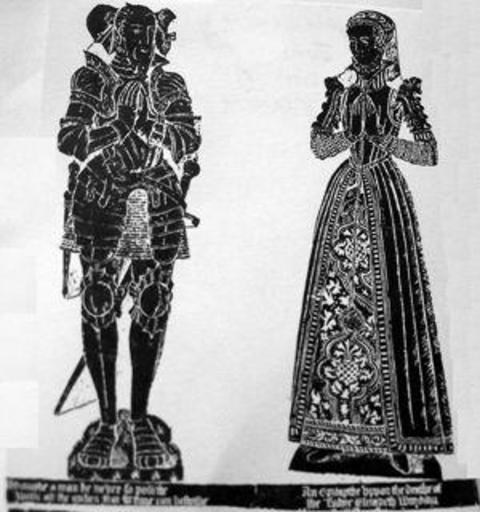 MAKE A MEME View Large Image JohnWyndham&ElizabethSydenhamWatchet.jpg en photograph of 19th c brass rubbing of monumental brass of Sir John Wyndham his wife Elizabeth Sydenham d 1571 St Decuman's Church Watchet Somerset http //www flickr com/photos/52219527 N00/...
