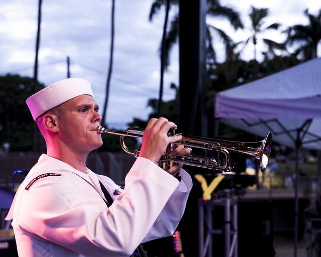 | Keywords: Joint Base Pearl Harbor Hickam Morale, Welfare and Recreation holds 4th of July celebration event 150704-N-ON468-378.jpg en 150704-N-ON468-378 PEARL HARBOR July 4 2015 Musician Second Class Rick Baty performs evening colors on a bugle during a Fourth of July celebration event at Joint Base Pearl Harbor-Hickam The Fourth of July event included performances from the bands O A R and Dishwalla a street bike stunt performance from professional street bike stunt rider Aaron Colton a fireworks display and a kids theme park U S Navy photo by Mass Communication Specialist 2nd Class Jeff Troutman/Released 2015-07-04 Petty Officer 2nd Class Jeffrey Troutman https //www dvidshub net/image/2044649 150704-N-ON468-378 2015-07-05 04 36 PEARL HARBOR HI US PD-USGov-Military-Navy 2015 in Pearl Harbor 4th of July Celebration 2015 Images from DoD uploaded by Fæ Trumpet players from the United States |